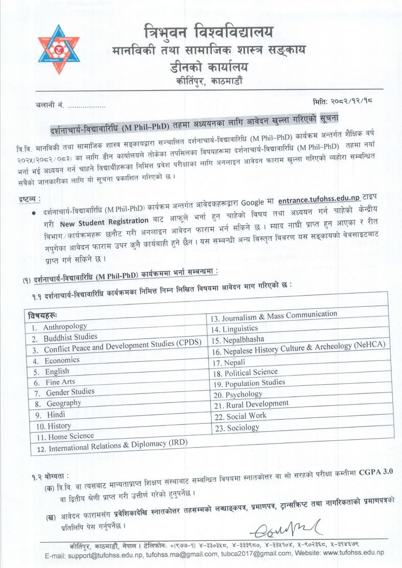 Entrance Registration Open for M.Phil./Ph.D. Programs
